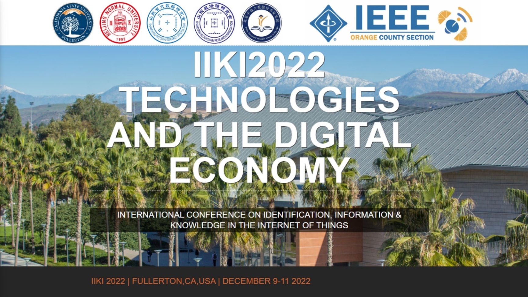12月9日至11日,由加州州立大学富尔顿分校(California State University, Fullerton)、山东省大数据研究会、山东大学联合主办,91在线 、北京中教大数据技术研究院和山东区块链研究会协办的第十一届物联网标识、信息与知识国际会议(IIKI2022)以线上会议的模式顺利举行。会议全程由山东省大数据研究会官方微信视频号“数据山东”同步直播。会议主题重点突出信息技术与数字经济两个版块,其中技术板块延续历届会议的相关分会,数字经济版块凸显数字经济与金融科技的主题,设立6个与之相关的分会。