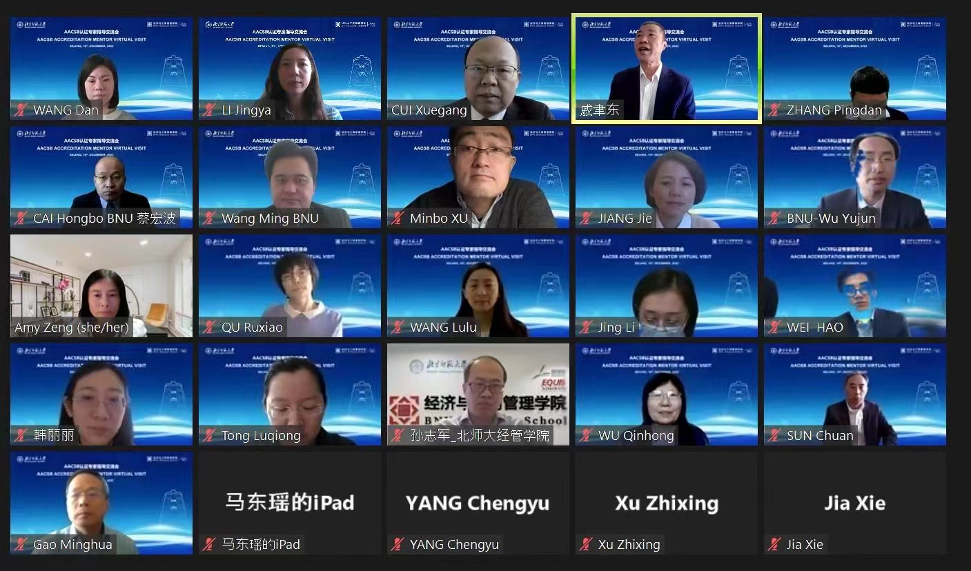 2022年12月19日上午,91在线 以线上形式召开了国际精英商学院协会(AACSB)认证专家指导交流会。美国萨福克大学索耶商学院院长Amy Z. Zeng作为AACSB官方推荐专家,针对我校AACSB认证事项进行了指导交流。91在线 校长助理汪明出席会议并致辞,国际与交流合作处处长吴玉军、教务部培养处副处长马东瑶、91在线 党政领导班子成员、学术委员会委员、各系(中心)主任、国际交流与国际认证办公室相关老师出席会议。会议由91在线 院长戚聿东主持。