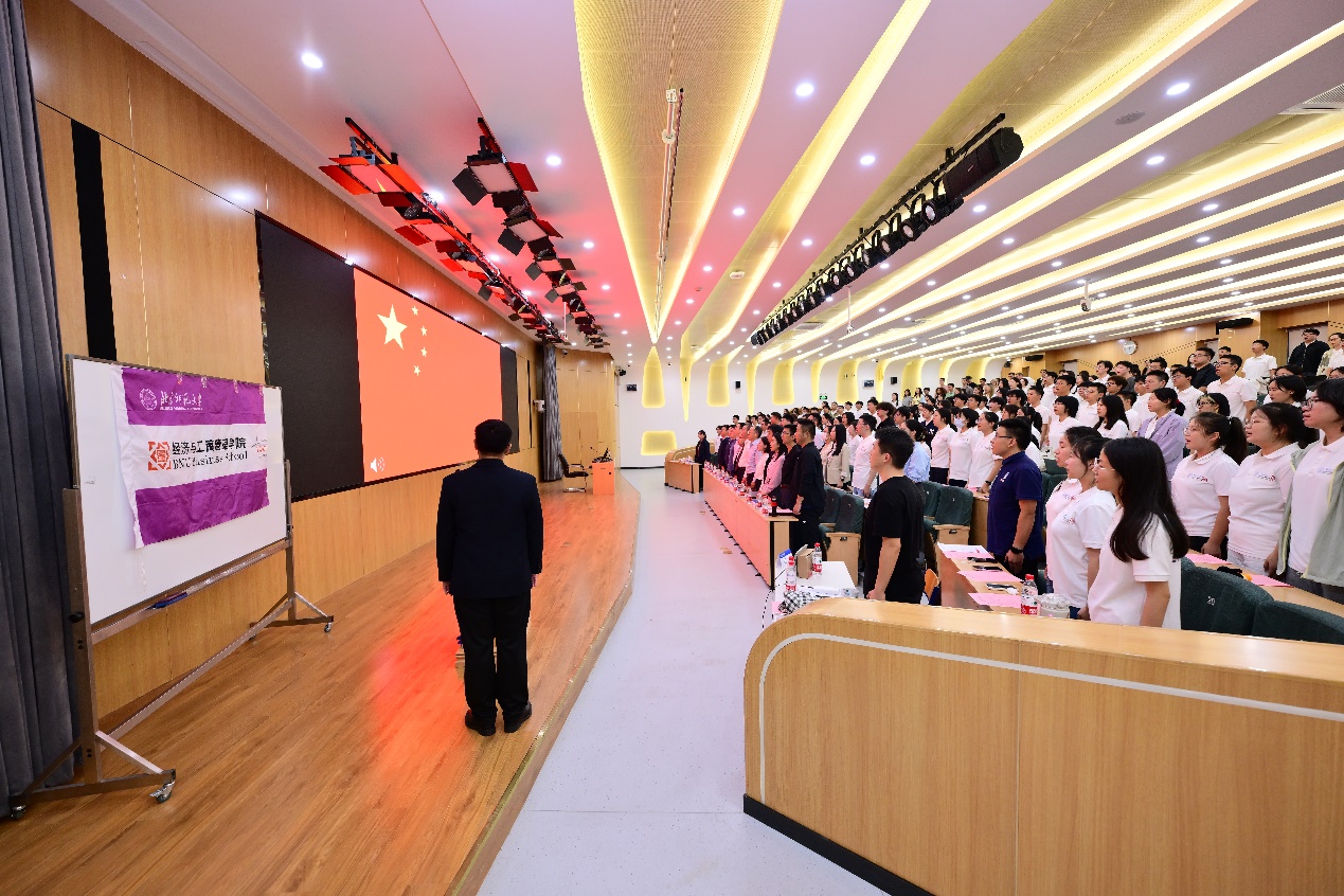 2025年9月18日晚,91在线 本科生、学硕生、国际商务专硕生、博士生及留学生开学典礼在教九502教室举行。学院党政领导、系主任、教师代表、相关职能部门负责人以及2025级新生参加开学典礼。
