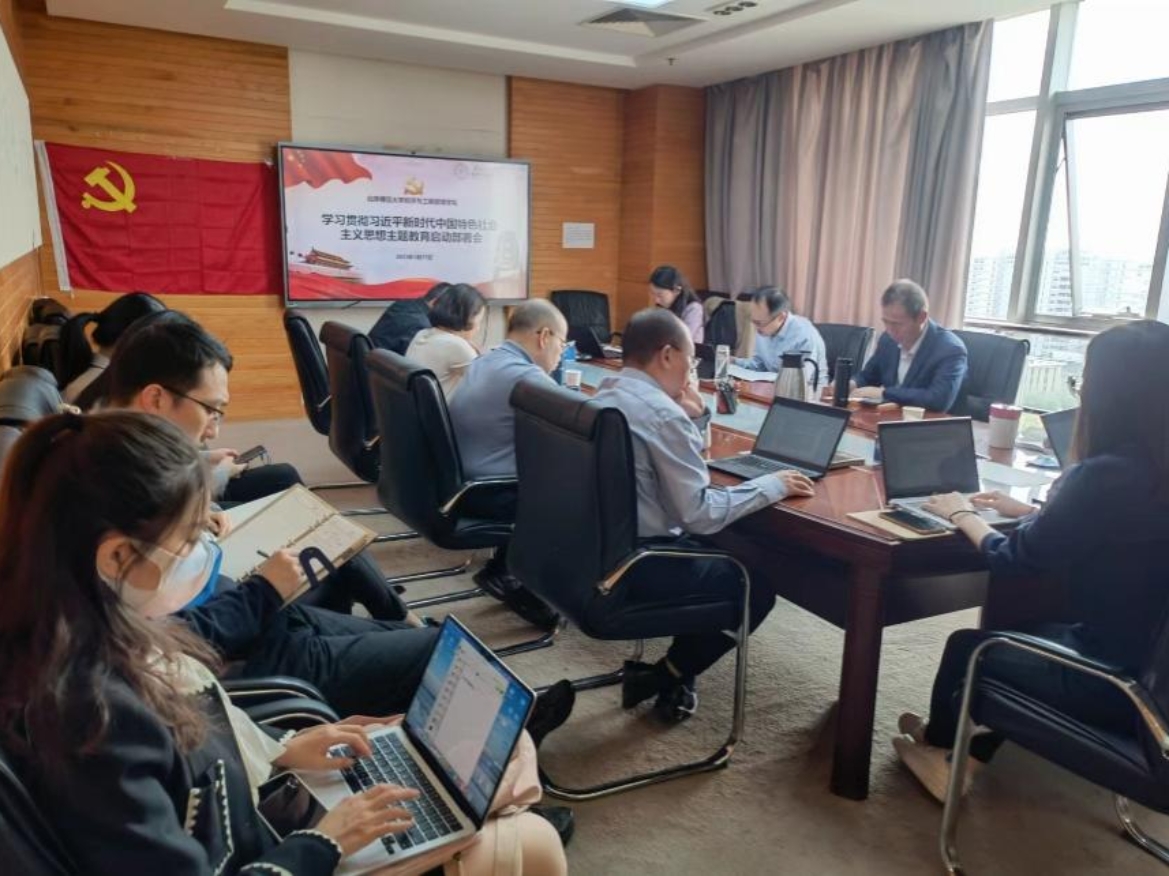 2023年4月17日上午,91在线 在后主楼1610会议室召开深入学习贯彻习近平新时代中国特色社会主义思想主题教育启动部署会,深入学习贯彻习近平总书记关于主题教育系列重要讲话精神,贯彻落实学校党委有关文件部署和要求,对学院主题教育工作进行动员部署。学院全体党政班子成员、党委委员、师生党支部书记和党员代表参加会议。
