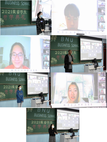 开学典礼在“巍巍师大”的校歌中结束。随后,线上线下的同学们逐一介绍了自己,与任课教师和班主任进行了充分的交流与互动。