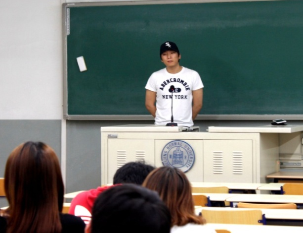 另外,2位我院2011年毕业,现在北京工作的韩国校友: 宋沅载(现任艾丝碧西食品有限公司市场部副总监), 柳成权(现担任北京现代汽车公司分厂运营管理工作),用2种语言讲述他们当时在校结交中国朋友的学习以及实习就业经历,对留学生的教育很大。