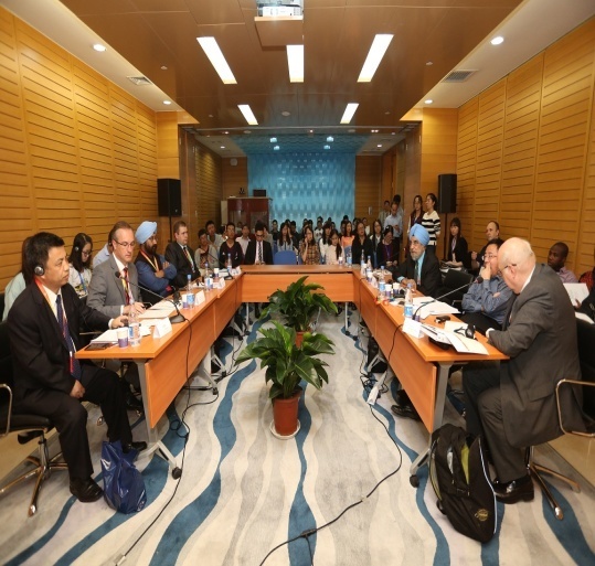 2015年10月17日,我院举办“金砖五国大学校长经济论坛”,来自金砖国家的数十位嘉宾与学院师生集聚京师学堂,就新兴市场的崛起、高等教育的国际化、金砖国家的可持续性发展进行交流和讨论。会上,在座学生积极发言,向嘉宾提出问题,并得到了细致、亲切的解答。这次活动,我院大部分WEC英文留学生和中文留学研究生参加此次活动,会间有些留学生与与会嘉宾进行亲切交谈,如哈萨克斯坦留学生奥蒂娜与世界银行前高级副行长/纳扎尔巴耶夫大学校长的亲切交谈,合影留念。