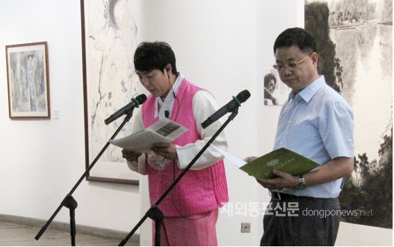 李知修(左)在“中韩水墨艺术展”和“农心辛拉面杯世界围棋团体锦标赛”上作主持人
