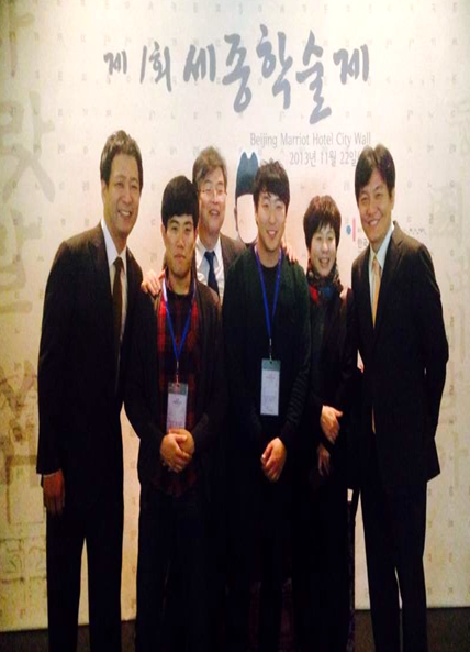 4、2014年11月22日北京万豪酒店,举办“韩国SEJONG城市论坛”及2013年11月29日第二届“中韩日化粧土陶瓷交流展”留学生朴仁恒,李知修等同学作志愿者,为大会服务。见下图。