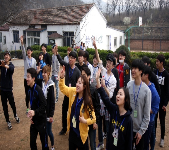 为迎接新同学,增进友谊,加强了解,我院韩国留学生秋季在郊区组织了运动联谊会。同学们在室外作游戏,玩的好开心。