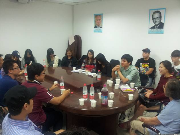 在2012年9月8日庆贺母校110周年校庆之日,在北师大新主楼经管院会议室,首次举办了在京的本院留学生校友与在校留学生的交流会。参加的同学不仅有高年级留学生,还有很多新生也积极参与并交流。在此次交流会中,大家都踊跃发言。其中校友宋沅栽(北京艾丝碧西食品有限公司营销部主任)为大家介绍了自己就业和工作的情况,另外校友金世罗(成均馆大学中国大学院研究生,现在在北京大学就读)也讲了关于读研的问题。此外,留学生校友们还与学弟学妹们分享了在校时学习以及生活等方面的经验和知识。交流会结束后,留学生班主任李慧老师赠予了校友们母校110周年校庆的礼品并合照留念。