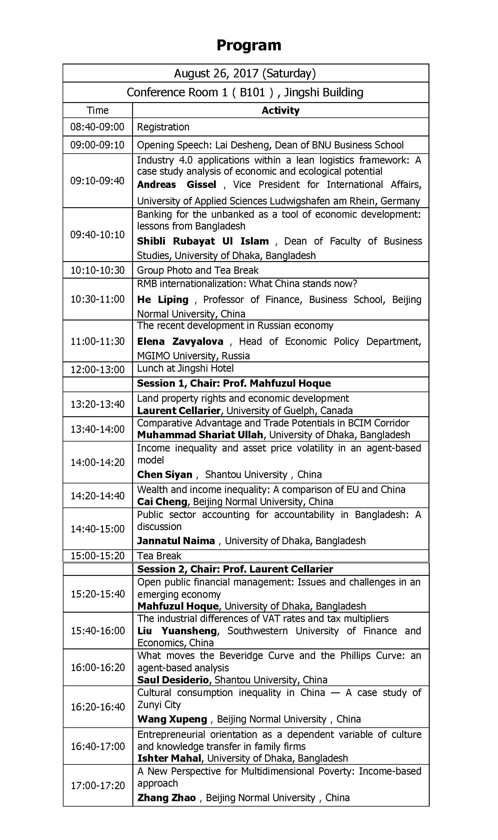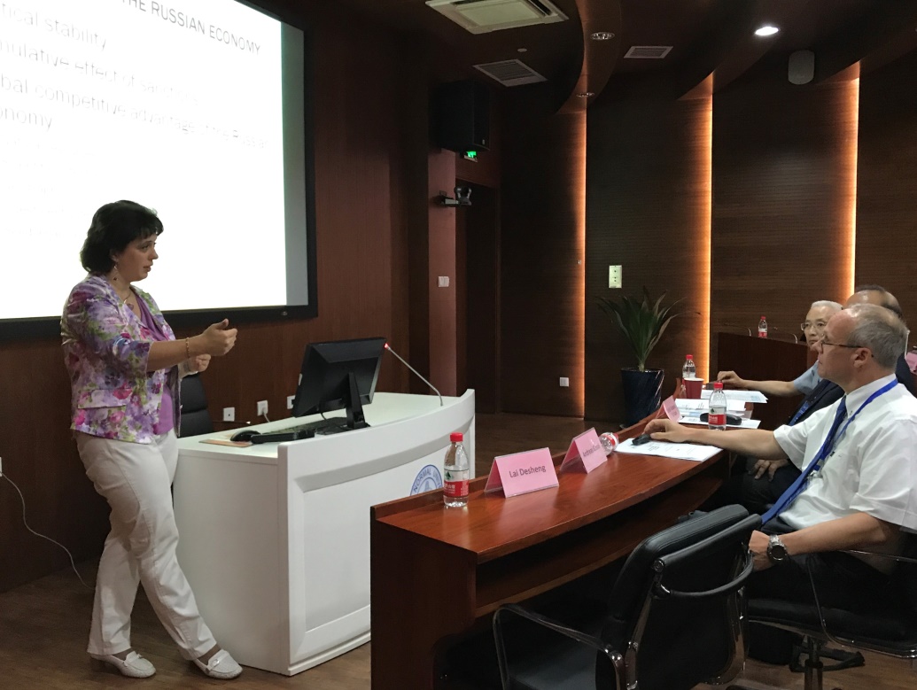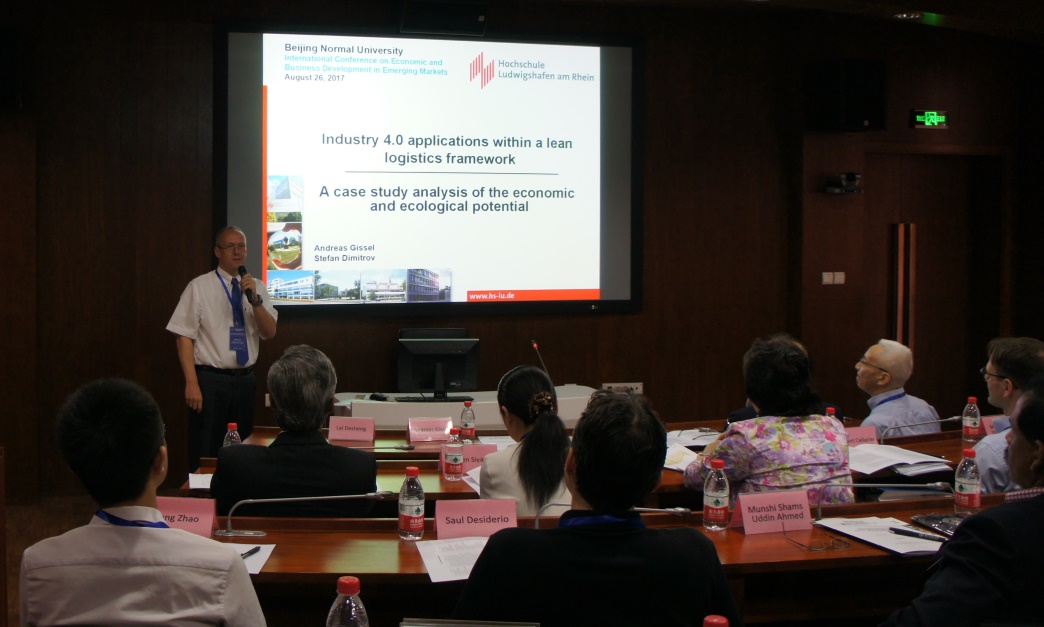 在主旨演讲部分,德国路德维希港应用科技大学(University of Applied Sciences Ludwigshafen am Rhein)副校长Andreas Gissel教授作了题为“Industry 4.0 applications within a lean logistics framework: A case study analysis of economic and ecological potential”的演讲;孟加拉国达卡大学(University of Dhaka)商学院院长Shibli Rubayat Ul Islam教授作了题为“Banking for the unbanked as a tool of economic development: lessons from Bangladesh”的演讲;我院贺立平教授发表了题为“RMB internationalization: What China stands now?”的演讲;俄罗斯莫斯科国立国际关系学院(MGIMO University)经济政策系主任Elena Zavyalova教授的演讲题目为“The recent development in Russian economy”。