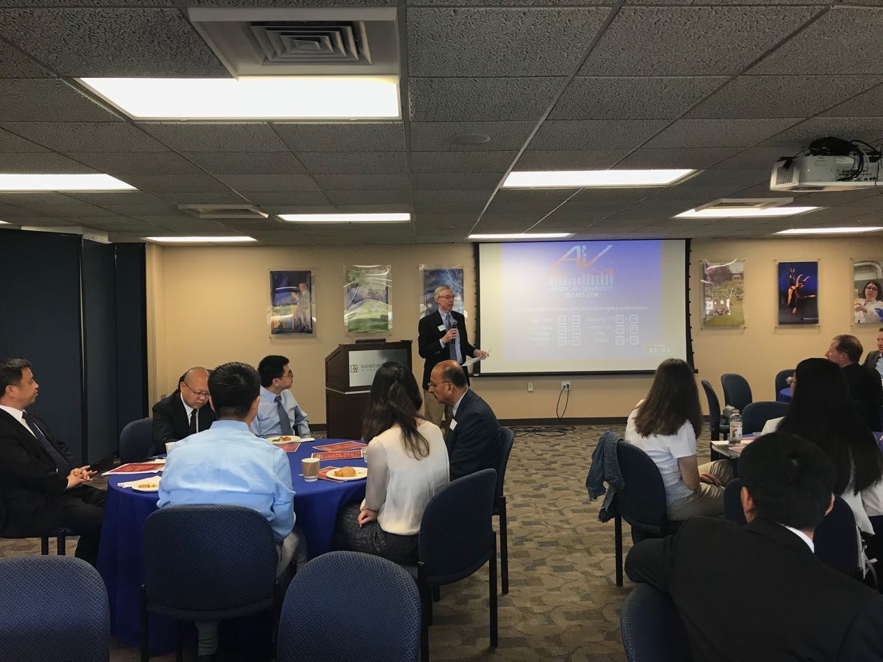 上午的开幕式在美利坚大学的Butler Board Room举行。美利坚大学Kogod商学院院长John Delaney教授首先致辞,他由衷肯定了论坛的创意和在北京成功举办首届论坛产生的影响,他对我方代表出席本次论坛表示欢迎并提出了美利坚大学地处华盛顿特区的优势和独特资源,他期待大家围绕首都经济发展和商业机会展开深入研讨。91在线 院长赖德胜在致辞中指出,91在线 将Kogod商学院视为重要合作伙伴,首届论坛在北京的成功举行是双方合作的标志性成果,他提出十九大的召开、北京市城市总体规划和雄安新区等为大家在本次论坛上研讨交流提供了绝佳素材,他预祝本次论坛取得圆满成功。开幕式由美利坚大学Kogod商学院院长助理和战略伙伴关系部主任Robert Sweeney主持。