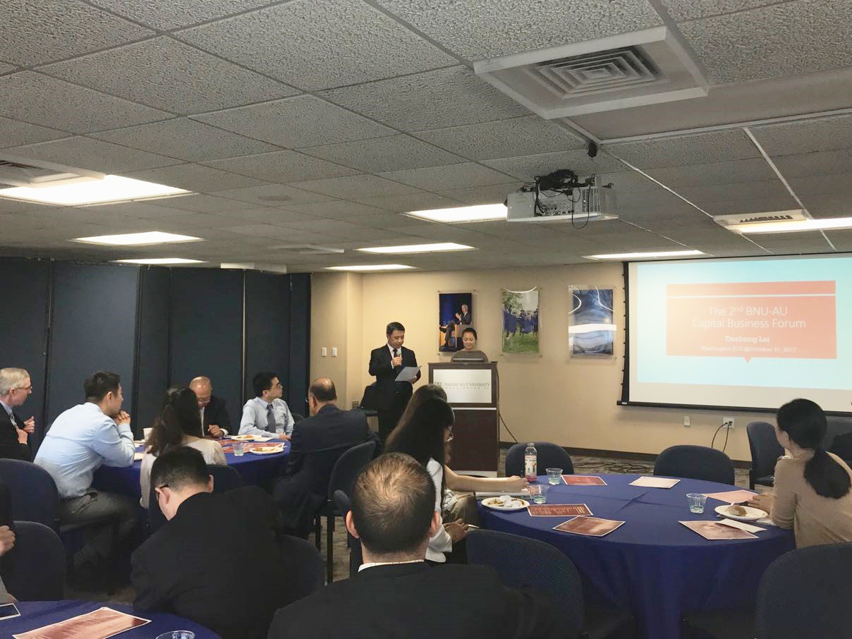 2017年10月21日,第二届中美首都经济论坛(BNU-AU Capital Business Forum)在美国华盛顿特区美利坚大学成功举行。本次论坛由美利坚大学Kogod商学院承办,中美学界、政府和业界的专家围绕中美关系及经贸发展、华盛顿特区、雄安新区、京津冀、文化产业、跨国公司等进行了广泛和深入的研讨。