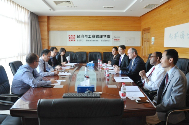 孙志军书记对代表团一行的到访表示欢迎。蔡宏波向来宾介绍了学院的历史、学科构成、科研优势,以及国际交流的网络和重点。Hanson教授首先介绍了本次来访的该校经济系主任Berhanu Abegaz、政府系助理教授Daniel Maliniak、政府系多元化办公室主任Dania Matos博士,以及北师大外文学院副教授、威廉玛丽大学孔子学院中方院长王德亮教授。随后,Hanson教授简要介绍了威廉玛丽大学的基本情况,并表达了与我院在科研、学位项目、学生交流等方面的合作意愿。