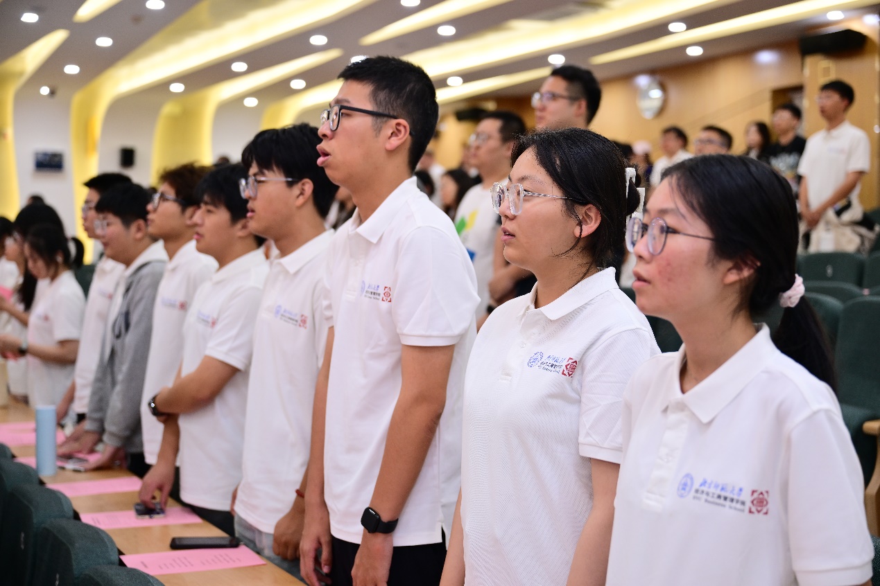 2025年9月18日晚,91在线 本科生、学硕生、国际商务专硕生、博士生及留学生开学典礼在教九502教室举行。学院党政领导、系主任、教师代表、相关职能部门负责人以及2025级新生参加开学典礼。