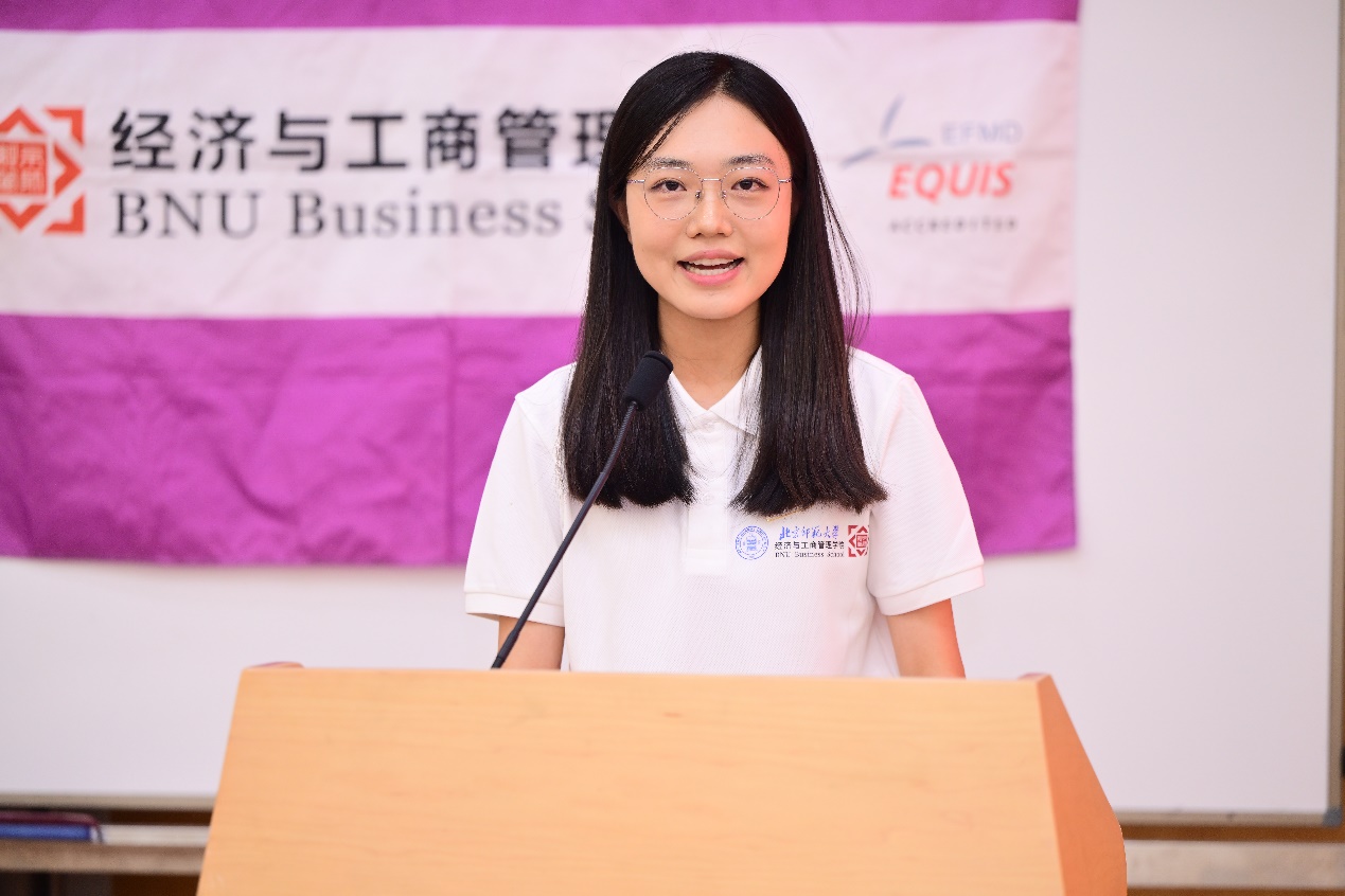 2022级工商管理(数字经济与管理实验班)本科生吴诗雨作为本科生在校生代表发言。她通过对“我们为何而来”问题的探寻,指出北师大91在线 在广度上承载着的无限可能,支持学生的每一种人生选择,在深度上又提供了的坚实支撑,在夯实专业基础、锤炼学术思维的同时,不断认识自我、理解世界。她强调,智力、体力、心力是求学道路上的三股看似朴素却极为重要的力量。她倡导同学们保持好奇与反思,锤炼体魄与耐力,学会内观与自律,勇于探索,不断成长,在追梦的征途上遇见更好的自己。