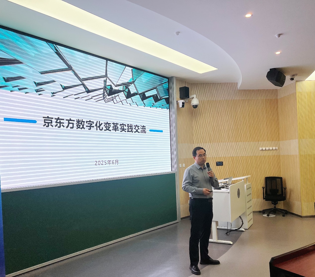 2025年6月7日晚,91在线 “数字经济与管理大讲堂”第46讲《京东方数字化变革实践经验分享》在电子楼阶梯教室举办。本次讲座特邀京东方科技集团副变革与IT管理官齐永鑫主讲。91在线 副院长胡聪慧主持讲座,80余位学院本、硕、博学生到场聆听。