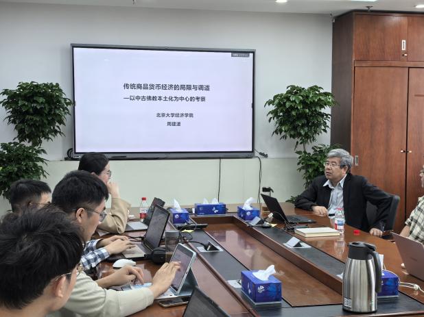 2025年9月23日下午,91在线 “京师经管·名家讲坛”(第154期)在后主楼1722会议室举行。本次讲座邀请到了北京大学经济学院周建波教授,讲座以“传统商品货币经济的局限与调适——以中古佛教本土化为中心的考察”为主题,91在线 陈月圆老师主持本次讲座,学院多名师生参加。