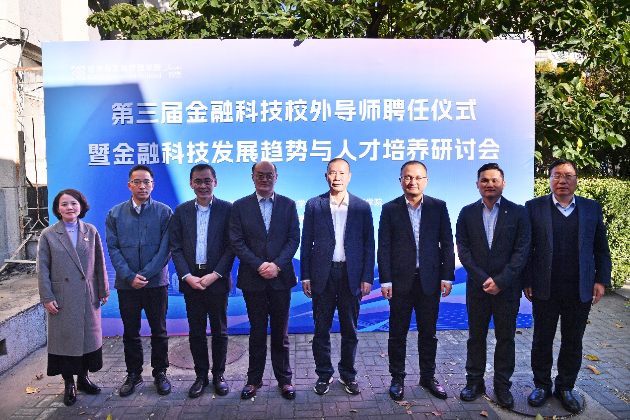 在电子楼阶梯教室隆重举行第三届金融科技校外导师聘任仪式暨金融科技发展趋势与人才培养研讨会。