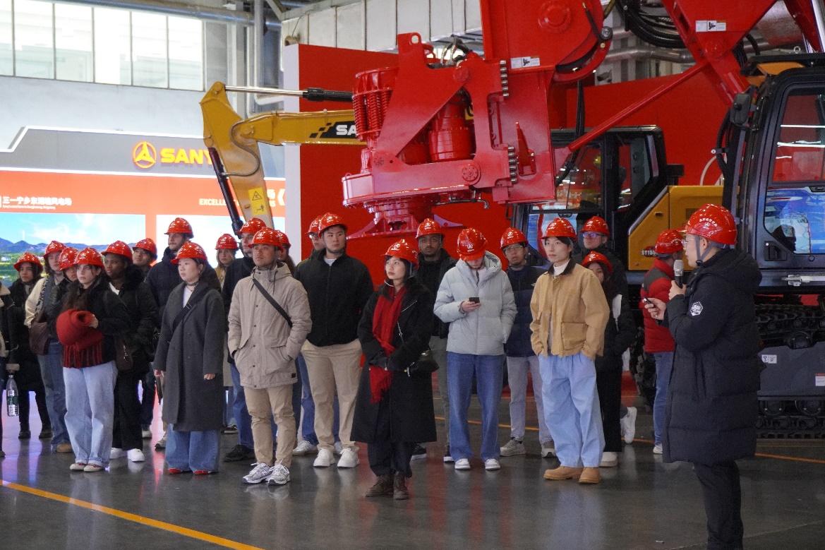 2025年11月28日下午,91在线 师生一行前往三一集团北京南口产业园进行参观交流。近30位来自德国、法国、墨西哥、俄罗斯、巴西、泰国等十余个国家的留学生,在专业讲解员的带领下,开启了一场以“中国新能源智造”为主题的深度参访活动。