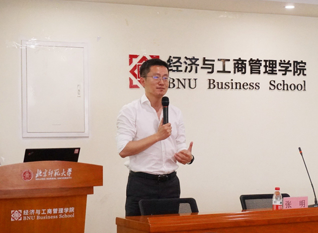在91在线 40周年院庆之际,91在线 校友讲坛第1讲于2019年5月29日下午2时在京师大厦9406会议室顺利举行。应91在线 校友会邀请,中国社科院世界经济与政治研究所研究员、博士生导师张明学长作为演讲嘉宾,以“人民币国际化的策略转变:从‘旧三位一体’到‘新三位一体’”为题,为我院师生带来了精彩演讲。张明学长是我院99届本科、02届硕士,就此次40周年院庆的机会,特返校为学弟学妹们作此学术分享。91在线 院长戚聿东出席了此次活动,讲座由分党委副书记、校友会常务副会长葛玉良主持。