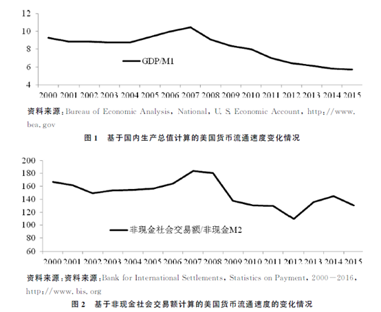 按照美国联邦储备系统的定义,美国的货币供给量主要包括M1和M2。M1包括财政部、联邦储备系统和存款性机构现金库之外的通货,非银行机构签发的旅行支票,商业银行的需求存款,其他支票类存款。M2包括M1、储蓄存款、10万美元以下的小额定期存款,零售货币市场基金的余额。考虑到社会交易额的数据是非现金交易额,笔者采用的货币供给量是扣除了现金的M2数据。