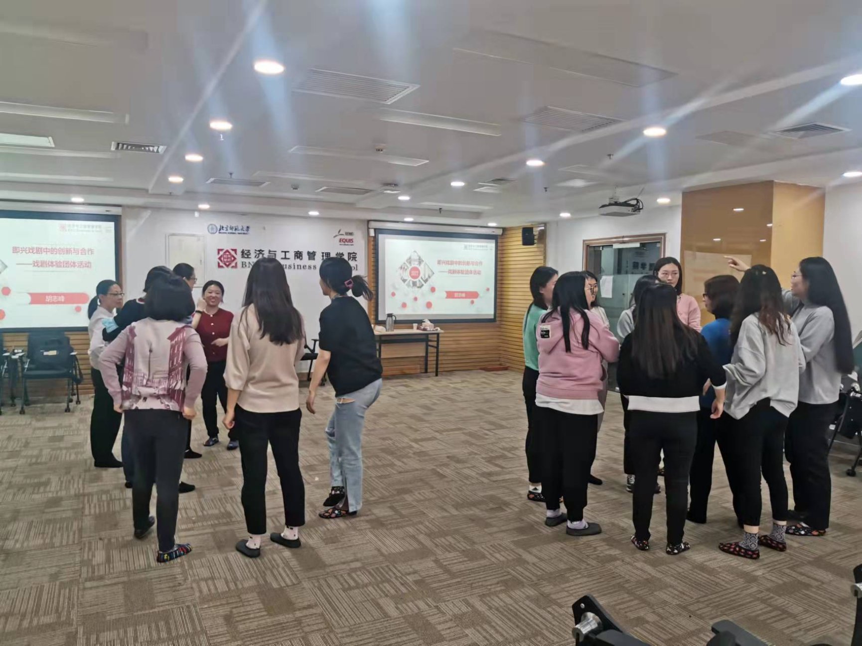 4月14日中午,91在线 “学习型专业化行政教师能力提升系列讲座”第二讲,“即兴戏剧中的创新与合作--戏剧体验团体活动”在京师大厦9406会议室顺利举办。本次活动有近20位学院行政教师参加,由机关党委办公室胡志峰老师带领老师们体验。