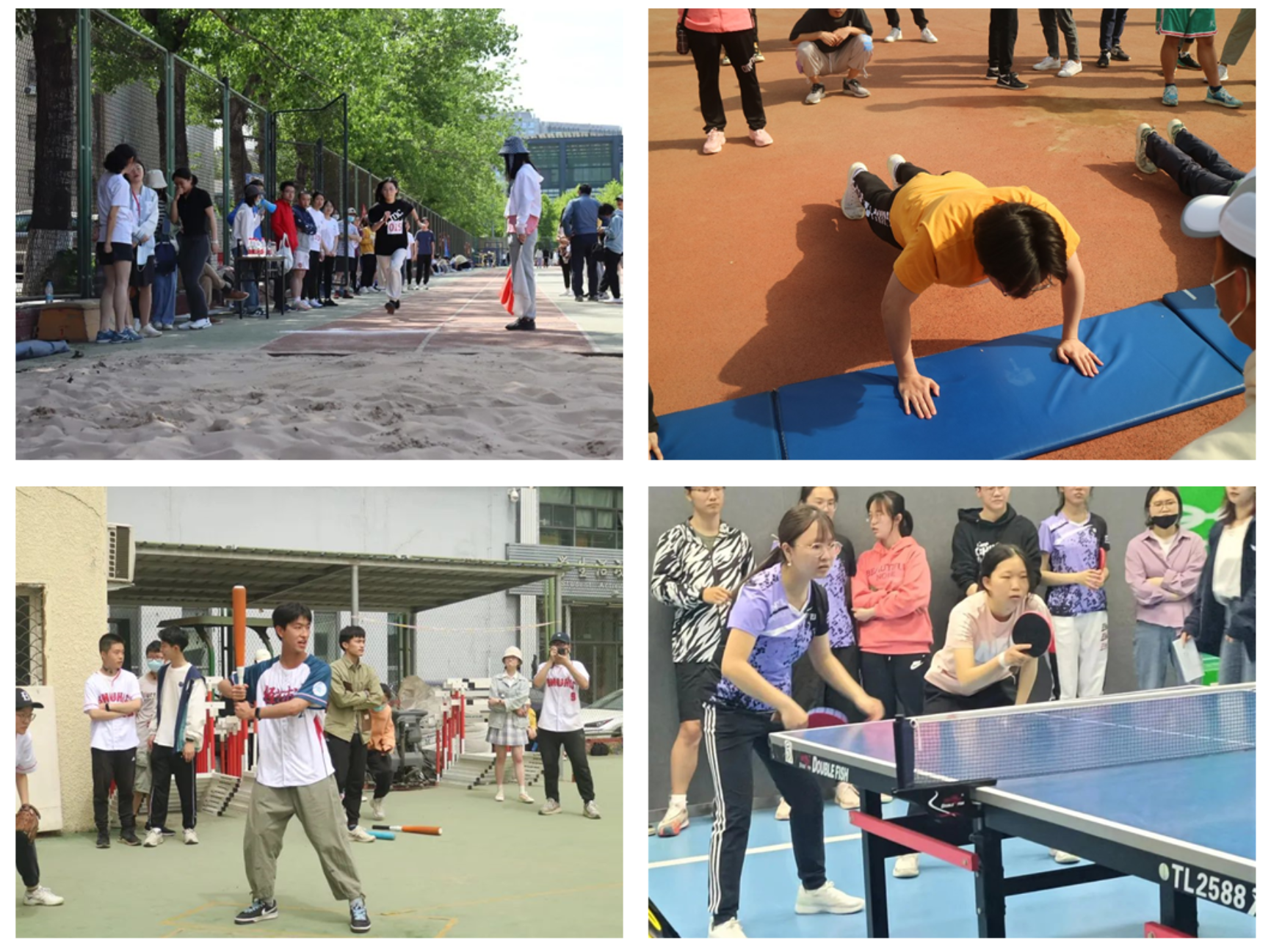 精彩的开幕式结束后,运动会正式开始。无论是个人项目还是团体项目,我院运动健儿都大展身手,拼尽全力,取得佳绩。教职工运动项目中,何浩然老师在男子1200米比赛中荣获乙组第二名。学生团体运动项目中,我院荣获30x150米名次跑接力赛甲组第二名、3V3篮球斗牛赛甲组第三名、集体太极拳第五名、实心球小组第五名、一分钟引体向上第二名、一分钟俯卧撑第三名、一分钟仰卧起坐第四名等优秀成绩、足球射门第二名、蛙跳接力第二名、乒乓球团体赛甲组第三名、排球传垫球赛第五名。学生单人项目中,张潘岩同学荣获男子跳远第八名、史晓凡同学荣获个人太极拳第六名、刘行同学荣获女子跳高甲组第二名、田嘉禾同学荣获男子跳高甲组第三名。