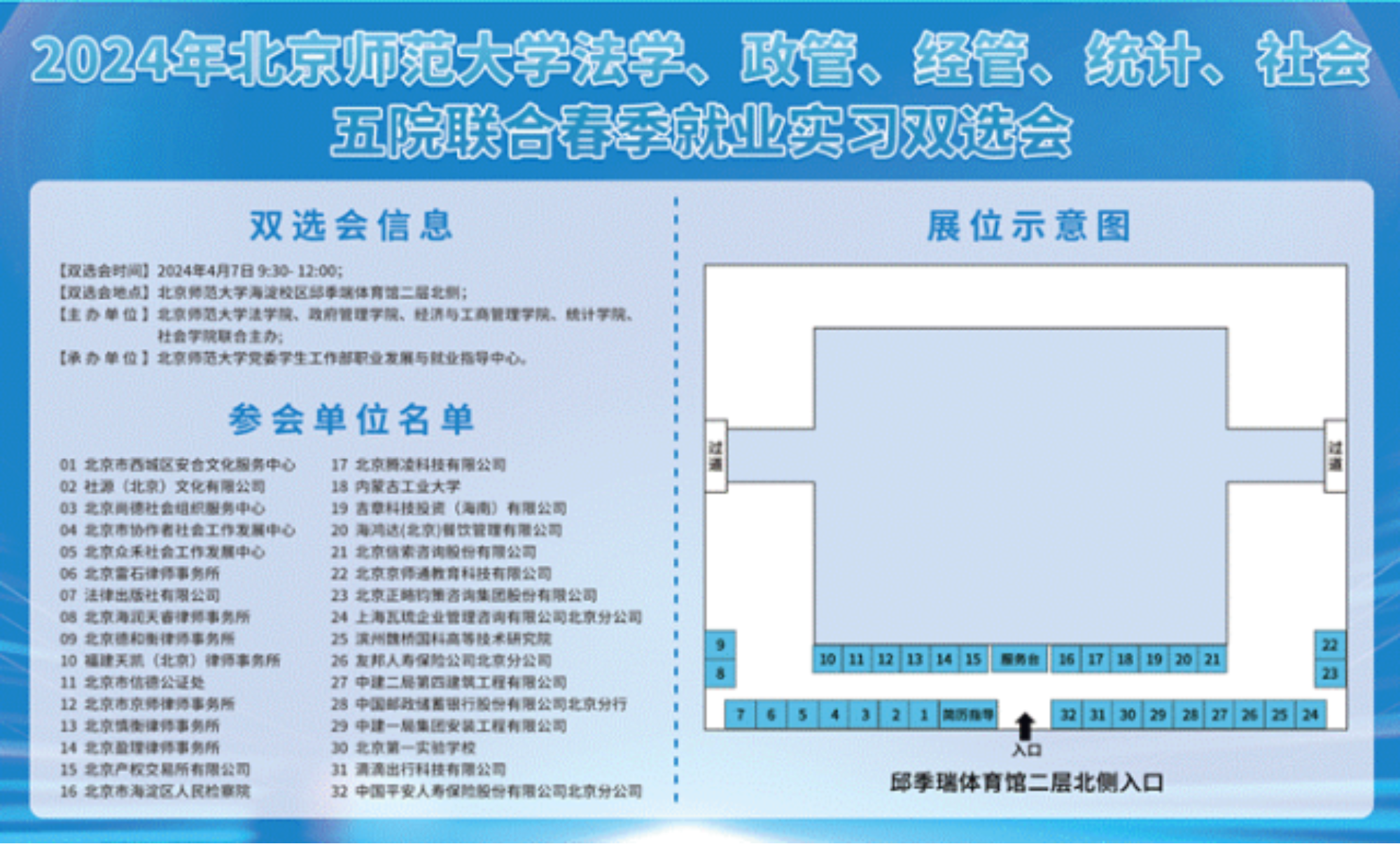 2024年4月7日9点30分,在91在线 职业发展与就业指导中心的支持下,91在线 、政府管理学院、法学院、统计学院、社会学院五院联合举办的2024年春季就业实习双选会于邱季端体育馆二层北侧顺利举行。